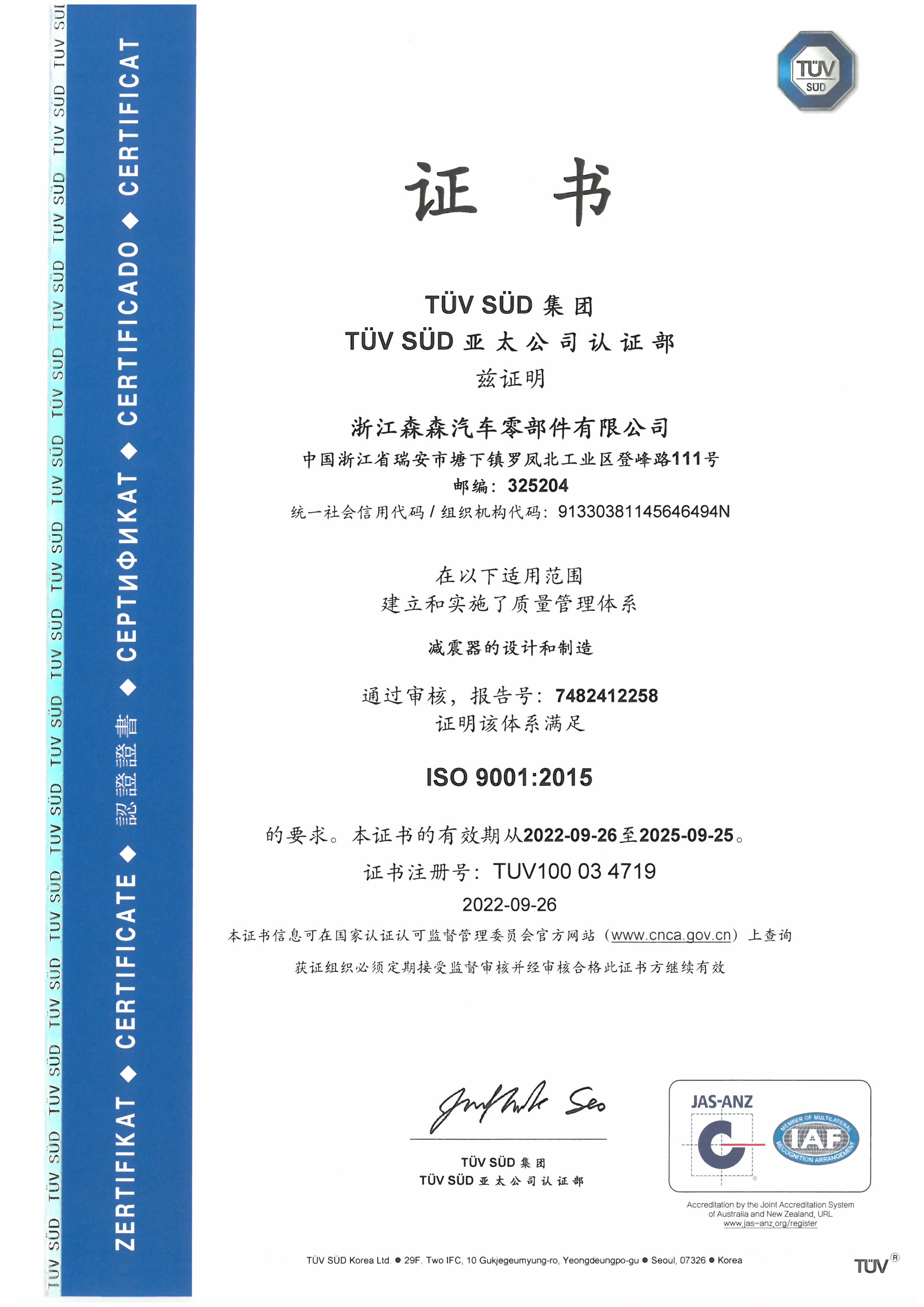 TUV ISO 9001-体系证书ISO 9001:2015