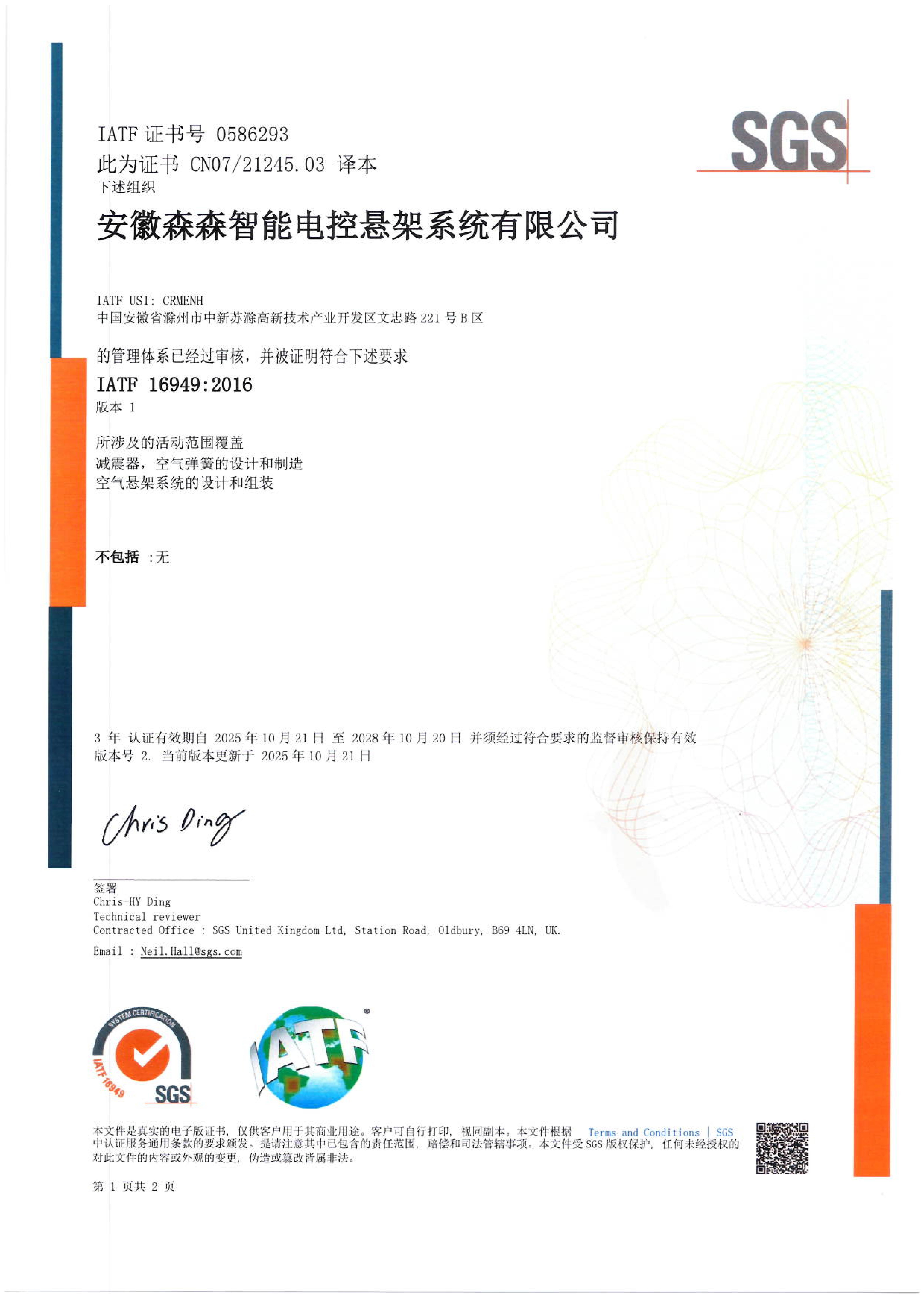 环境管理体系证书IATF 16949 2016 PAGE2